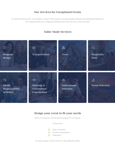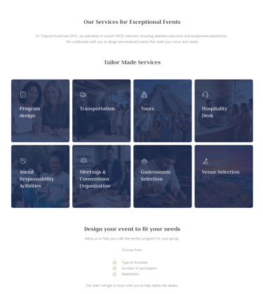 As a Junior UX/UI Designer, I was tasked with redesigning the digital presence of Tropical Incentives DMC. The primary goal was to transform a static informational site into a high-performance lead generation engine. The challenge lay in balancing the company's extensive service catalog with a seamless, intuitive experience for event planners and B2B clients.
